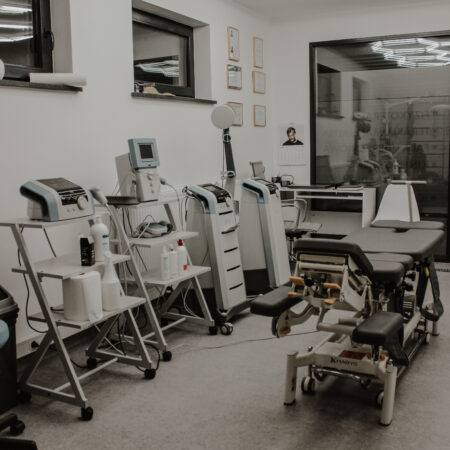 - Fizykoterapię – nowoczesne zabiegi wspomagające regenerację i łagodzące dolegliwości bólowe.